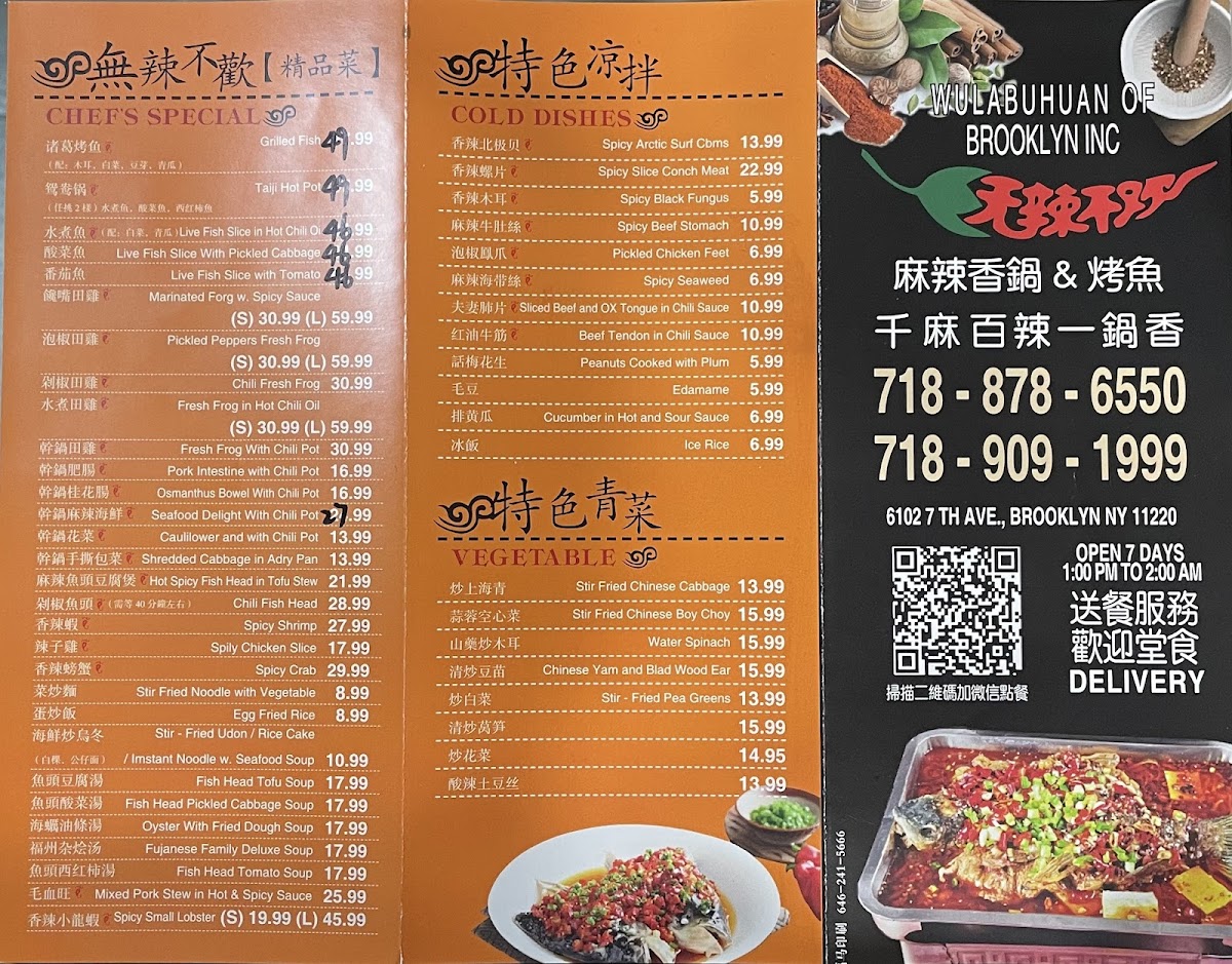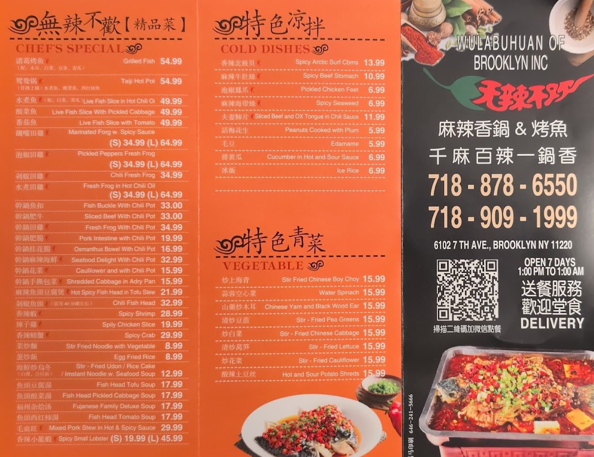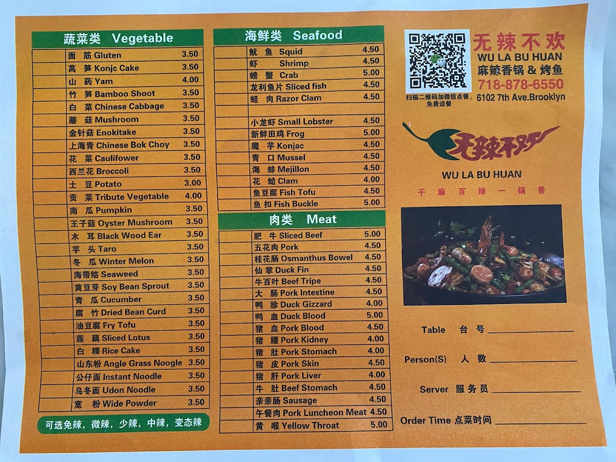 Welcome to Wu La Bu Huan, a culinary gem nestled in Brooklyn, NY. This vibrant eatery specializes in those who crave spicy delights. The menu brims with tantalizing options that showcase authentic flavors and generous portions.